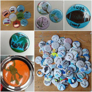 Im Lichthof unserer Schule entstehen zu den 7 Kontinenten sieben thematisch gestaltete Säulen in einem Kunstprojekt. Die Button-Maschine versorgt alle mit individuellen Button zu ihren Kontinenten.